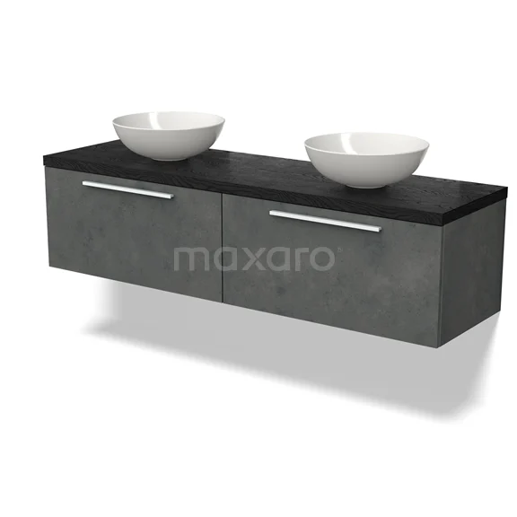 Modulo Plato Badmöbel mit Aufsatzwaschbecken | 160 cm Dunkelgrauer Beton Flach front Schwarze Eiche blatt 2 nebeneinanderliegende Schubladen