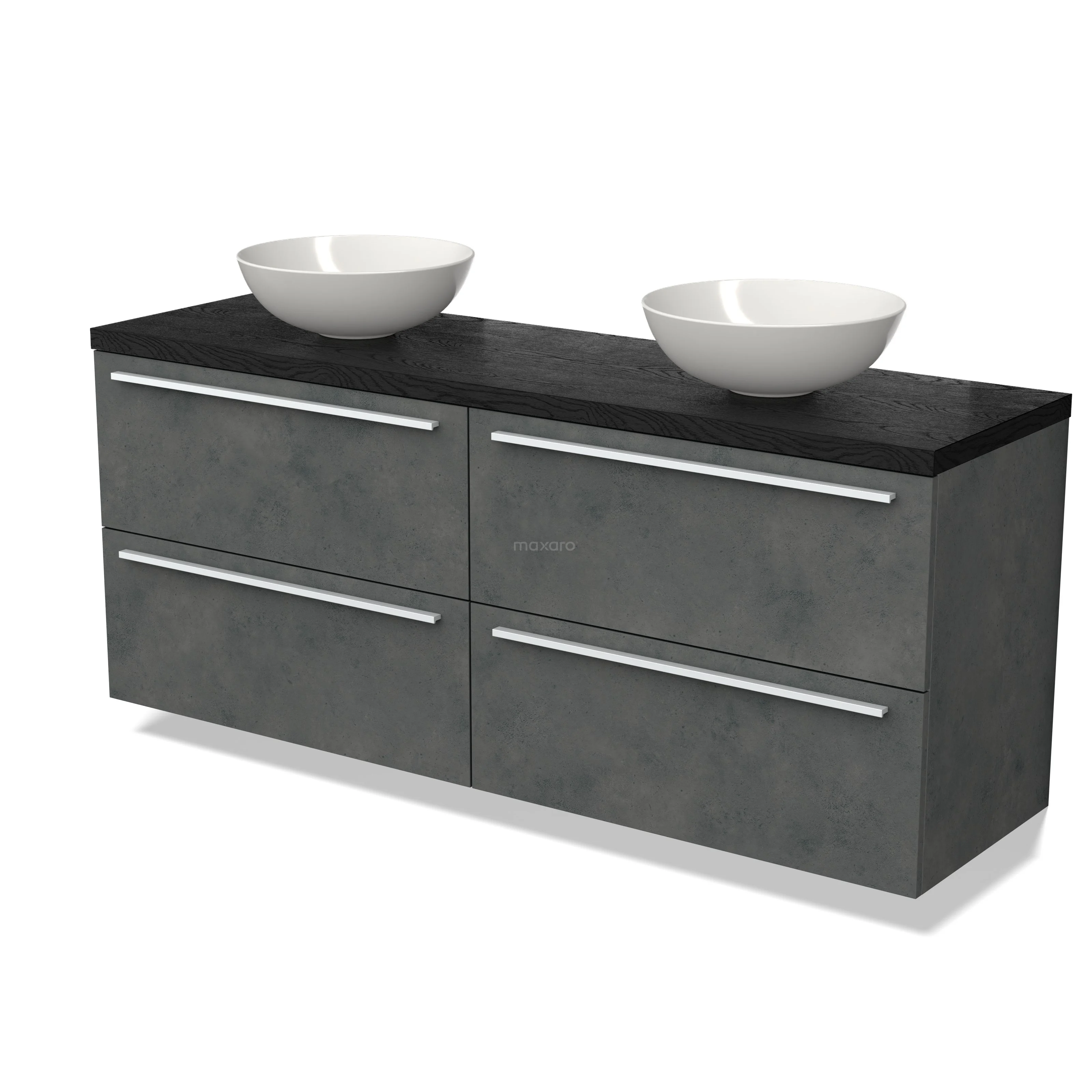 Modulo Plato Badmöbel mit Aufsatzwaschbecken | 160 cm Dunkelgrauer Beton Flach front Schwarze Eiche blatt 4 Schubladen