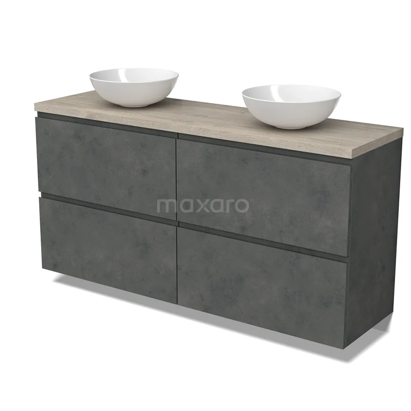 Modulo Plato Badmöbel mit Aufsatzwaschbecken | 160 cm Dunkelgrauer Beton Grifflos front Hellgraue Eiche blatt 4 hohe Schubladen