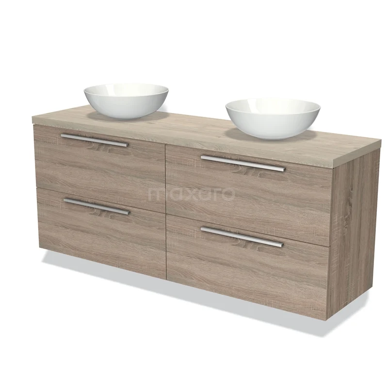 Modulo Plato Badmöbel mit Aufsatzwaschbecken | 160 cm Eiche Flach front Hellgraue Eiche blatt 4 Schubladen