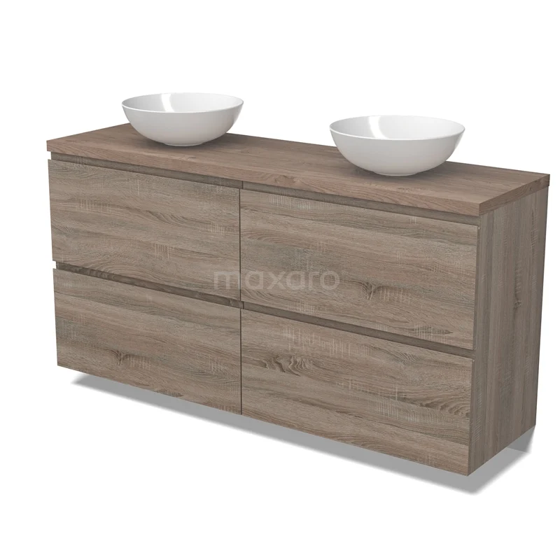 Modulo Plato Badmöbel mit Aufsatzwaschbecken | 160 cm Eiche Grifflos front Mittelbraune Eiche blatt 4 hohe Schubladen BMK14-00765