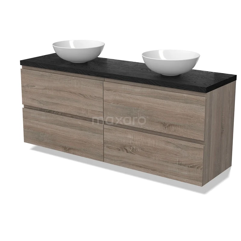 Modulo Plato Badmöbel mit Aufsatzwaschbecken | 160 cm Eiche Grifflos front Schwarze Eiche blatt 4 Schubladen