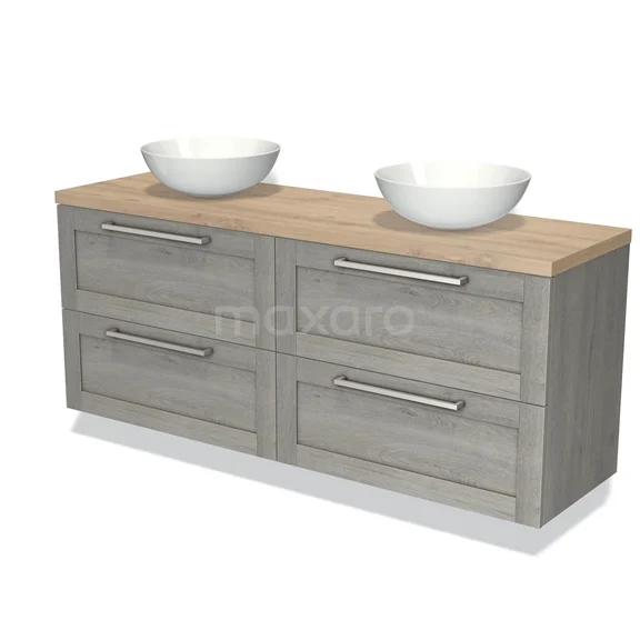 Modulo Plato Badmöbel mit Aufsatzwaschbecken | 160 cm Graue Eiche Rahmen front Hellbraune Eiche blatt 4 Schubladen