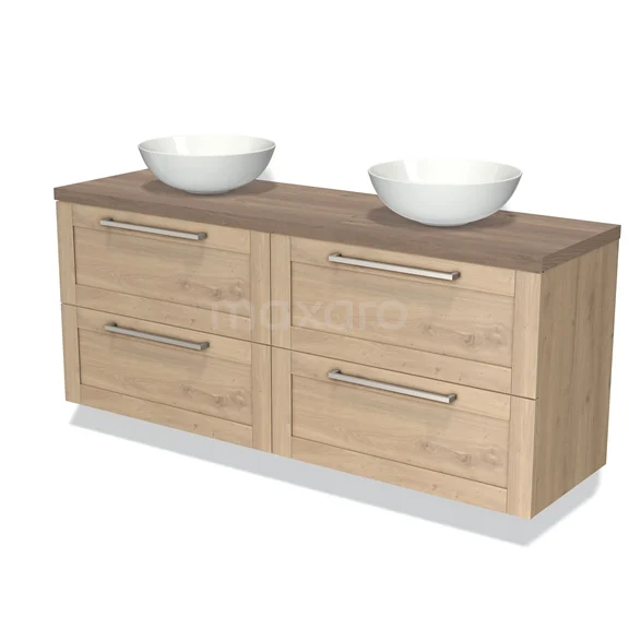 Modulo Plato Badmöbel mit Aufsatzwaschbecken | 160 cm Hellbraune Eiche Rahmen front Mittelbraune Eiche blatt 4 Schubladen