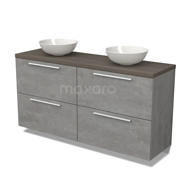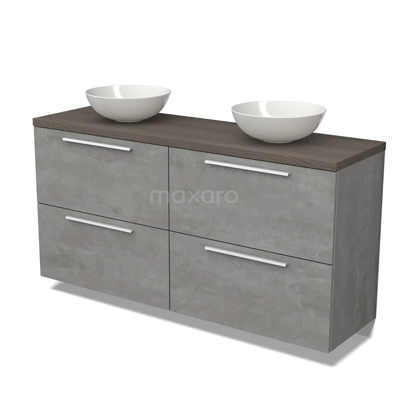 Modulo Plato Badmöbel mit Aufsatzwaschbecken | 160 cm Hellgrauer Beton Flach front Dunkelbraune Eiche blatt 4 hohe Schubladen