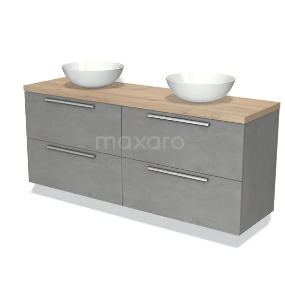 Modulo Plato Badmöbel mit Aufsatzwaschbecken | 160 cm Hellgrauer Beton Flach front Hellbraune Eiche blatt 4 Schubladen