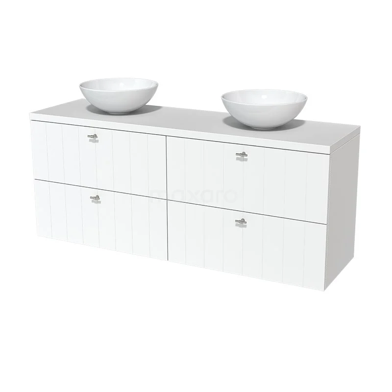 Modulo Plato Badmöbel mit Aufsatzwaschbecken | 160 cm Matt Weiß Lamelle front Matt Weiß blatt 4 Schubladen