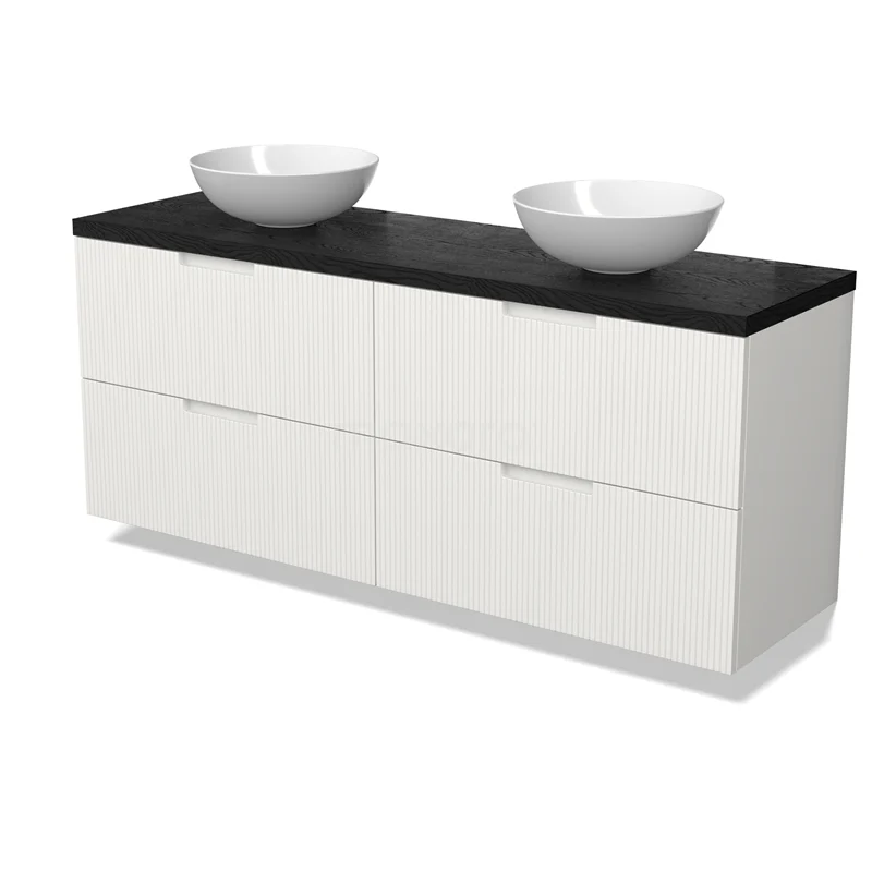 Modulo Plato Badmöbel mit Aufsatzwaschbecken | 160 cm Matt Weiß Linie front Schwarze Eiche blatt 4 Schubladen
