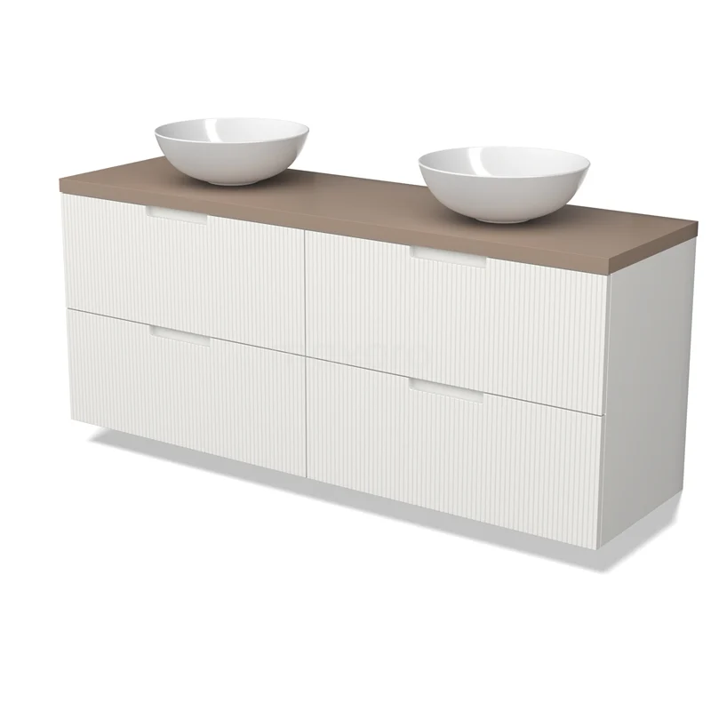 Modulo Plato Badmöbel mit Aufsatzwaschbecken | 160 cm Matt Weiß Linie front Taupe blatt 4 Schubladen