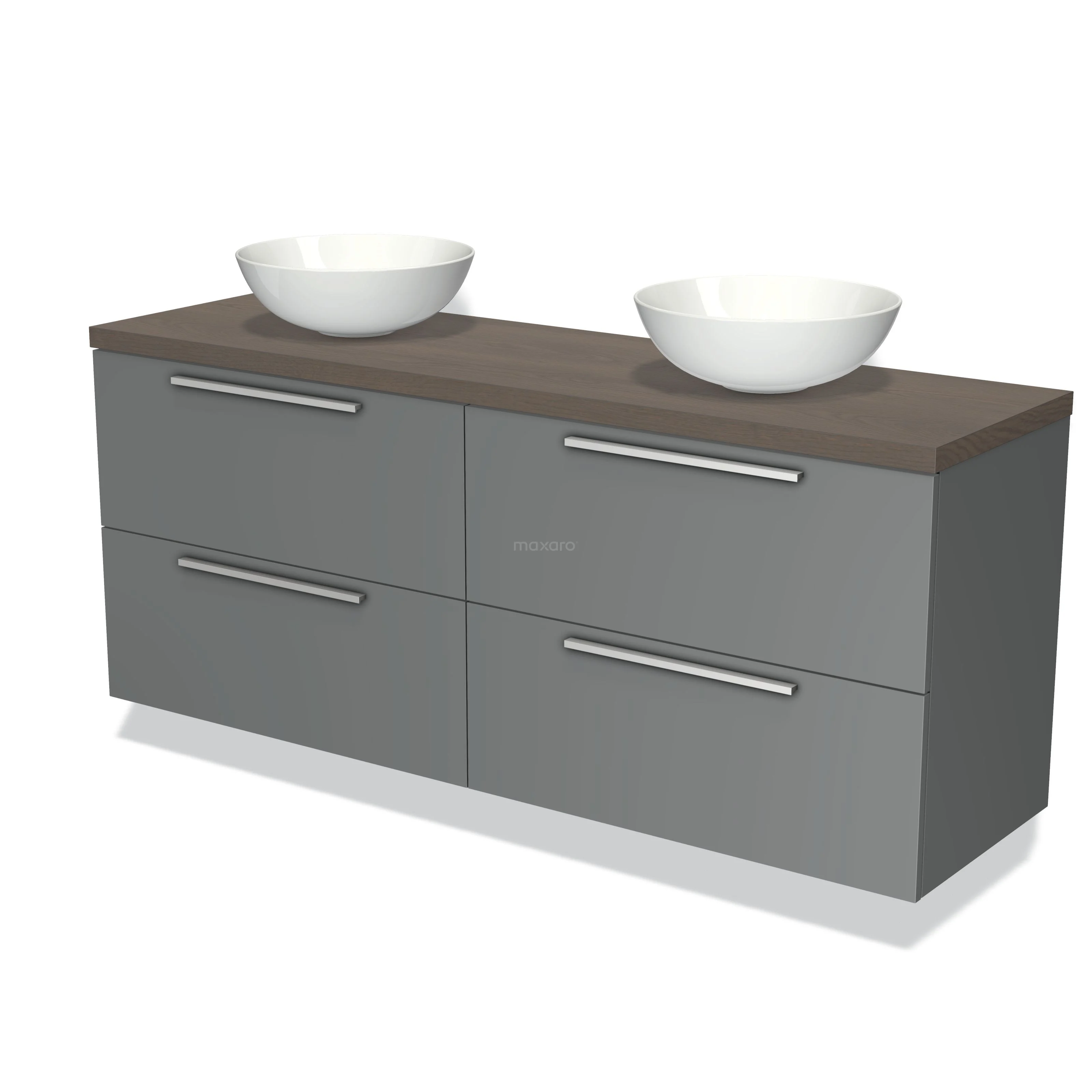 Modulo Plato Badmöbel mit Aufsatzwaschbecken | 160 cm Mittelgrau Flach front Dunkelbraune Eiche blatt 4 Schubladen