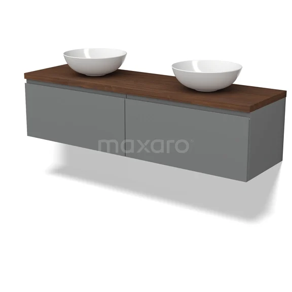 Modulo Plato Badmöbel mit Aufsatzwaschbecken | 160 cm Mittelgrau Grifflos front Walnuss blatt 2 nebeneinanderliegende Schubladen