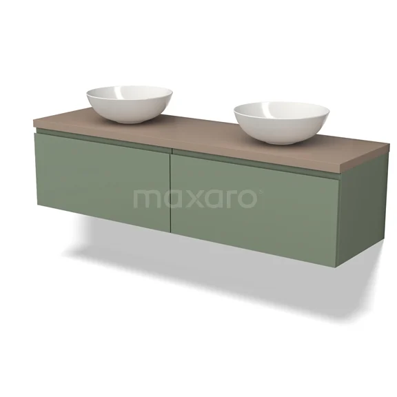 Modulo Plato Badmöbel mit Aufsatzwaschbecken | 160 cm Salbeigrün Grifflos front Taupe blatt 2 nebeneinanderliegende Schubladen