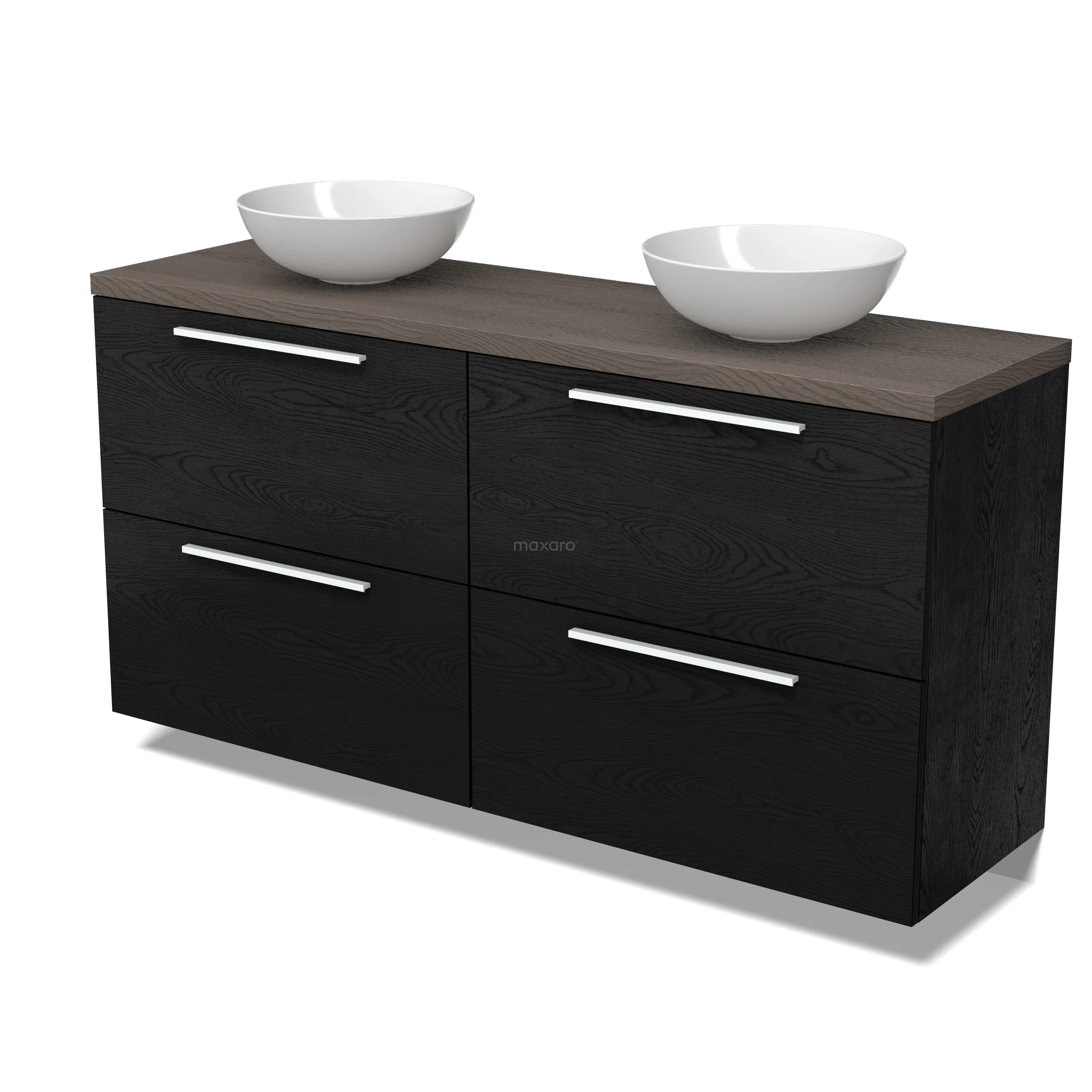 Modulo Plato Badmöbel mit Aufsatzwaschbecken | 160 cm Schwarze Eiche Flach front Dunkelbraune Eiche blatt 4 hohe Schubladen
