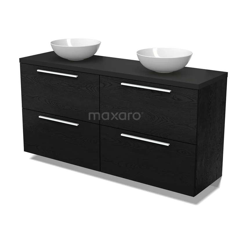 Modulo Plato Badmöbel mit Aufsatzwaschbecken | 160 cm Schwarze Eiche Flach front Matt Schwarz blatt 4 hohe Schubladen