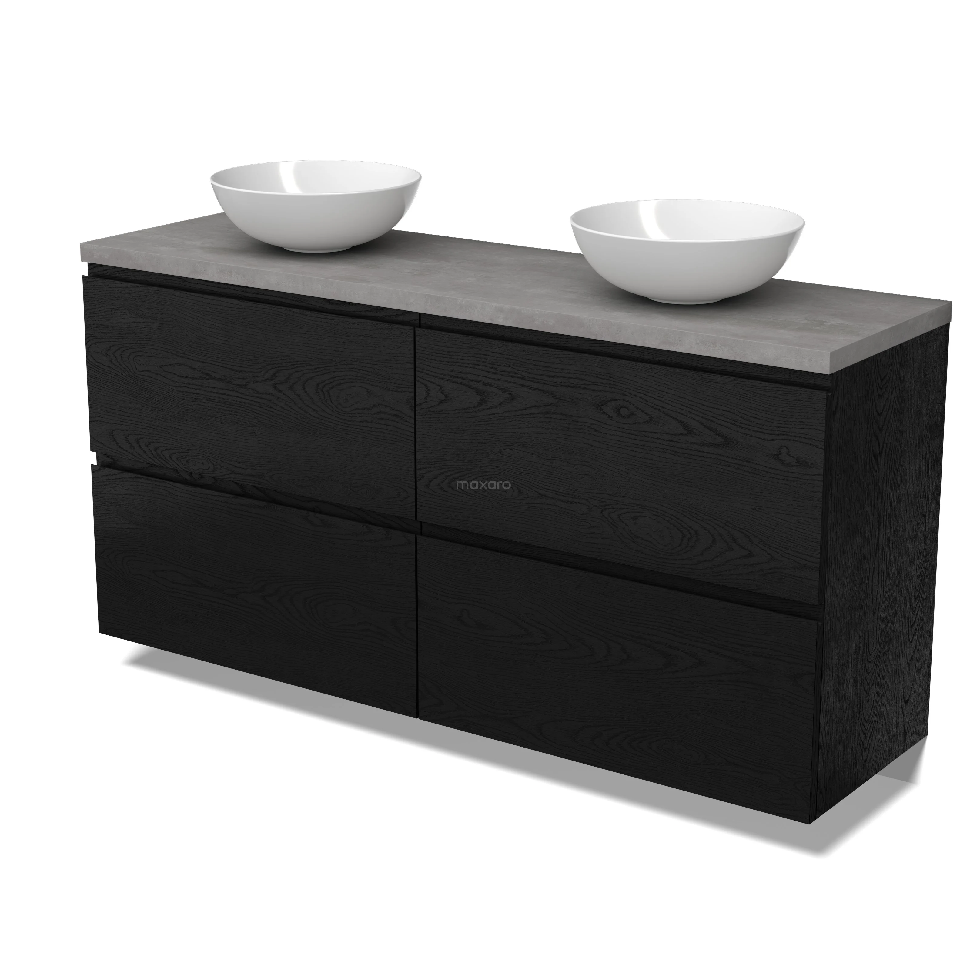 Modulo Plato Badmöbel mit Aufsatzwaschbecken | 160 cm Schwarze Eiche Grifflos front Hellgrauer Beton blatt 4 hohe Schubladen