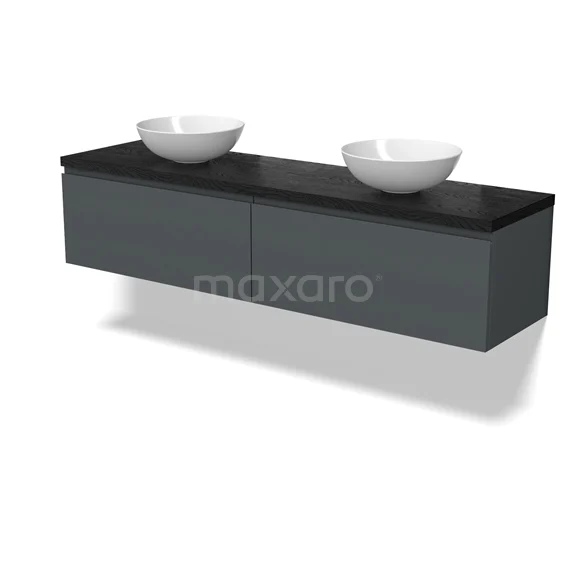 Modulo Plato Badmöbel mit Aufsatzwaschbecken | 180 cm Dunkelgrau Grifflos front Schwarze Eiche blatt 2 nebeneinanderliegende Schubladen