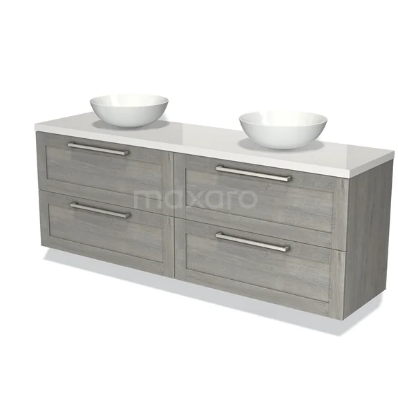 Modulo Plato Badmöbel mit Aufsatzwaschbecken | 180 cm Graue Eiche Rahmen front Hochglanz Weiß blatt 4 Schubladen