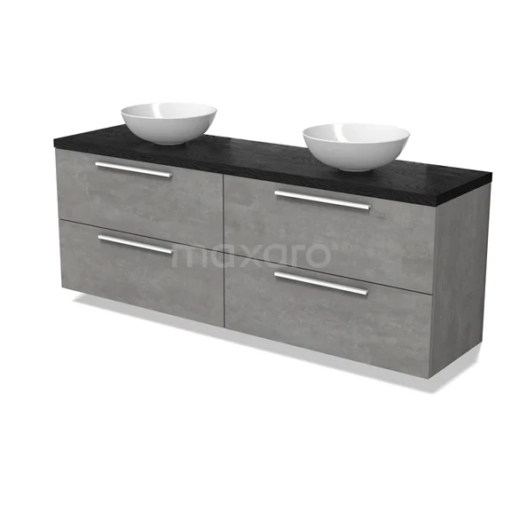 Modulo Plato Badmöbel mit Aufsatzwaschbecken | 180 cm Hellgrauer Beton Flach front Schwarze Eiche blatt 4 Schubladen