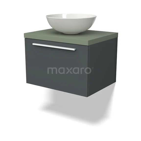 Modulo Plato Badmöbel mit Aufsatzwaschbecken | 60 cm Dunkelgrau Flach front Salbeigrün blatt 1 Schublade