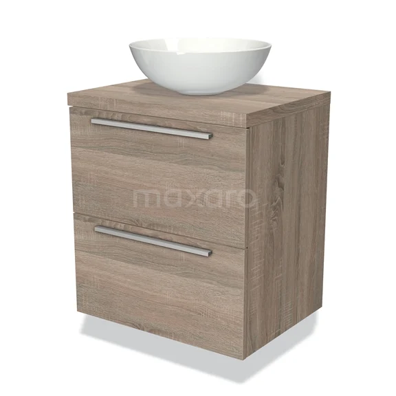 Modulo Plato Badmöbel mit Aufsatzwaschbecken | 60 cm Eiche Flach front Eiche blatt 2 übereinanderliegende Schubladen