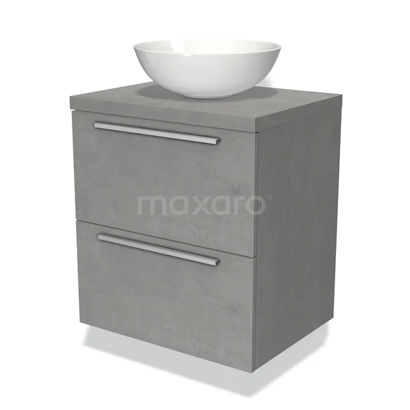 Modulo Plato Badmöbel mit Aufsatzwaschbecken | 60 cm Hellgrauer Beton Flach front Hellgrauer Beton blatt 2 übereinanderliegende Schubladen
