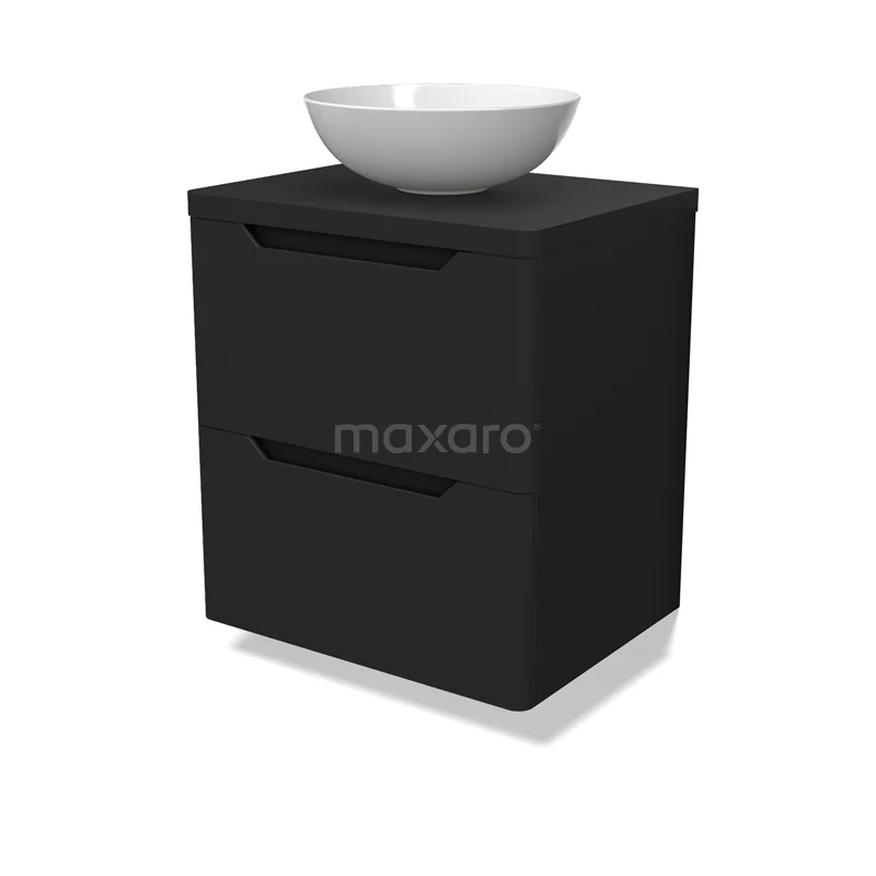Modulo Plato Badmöbel mit Aufsatzwaschbecken | 60 cm Matt Schwarz Rund front Matt Schwarz blatt 2 übereinanderliegende Schubladen BMK17-03105