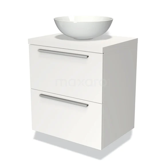 Modulo Plato Badmöbel mit Aufsatzwaschbecken | 60 cm Matt Weiß Flach front Matt Weiß blatt 2 übereinanderliegende Schubladen