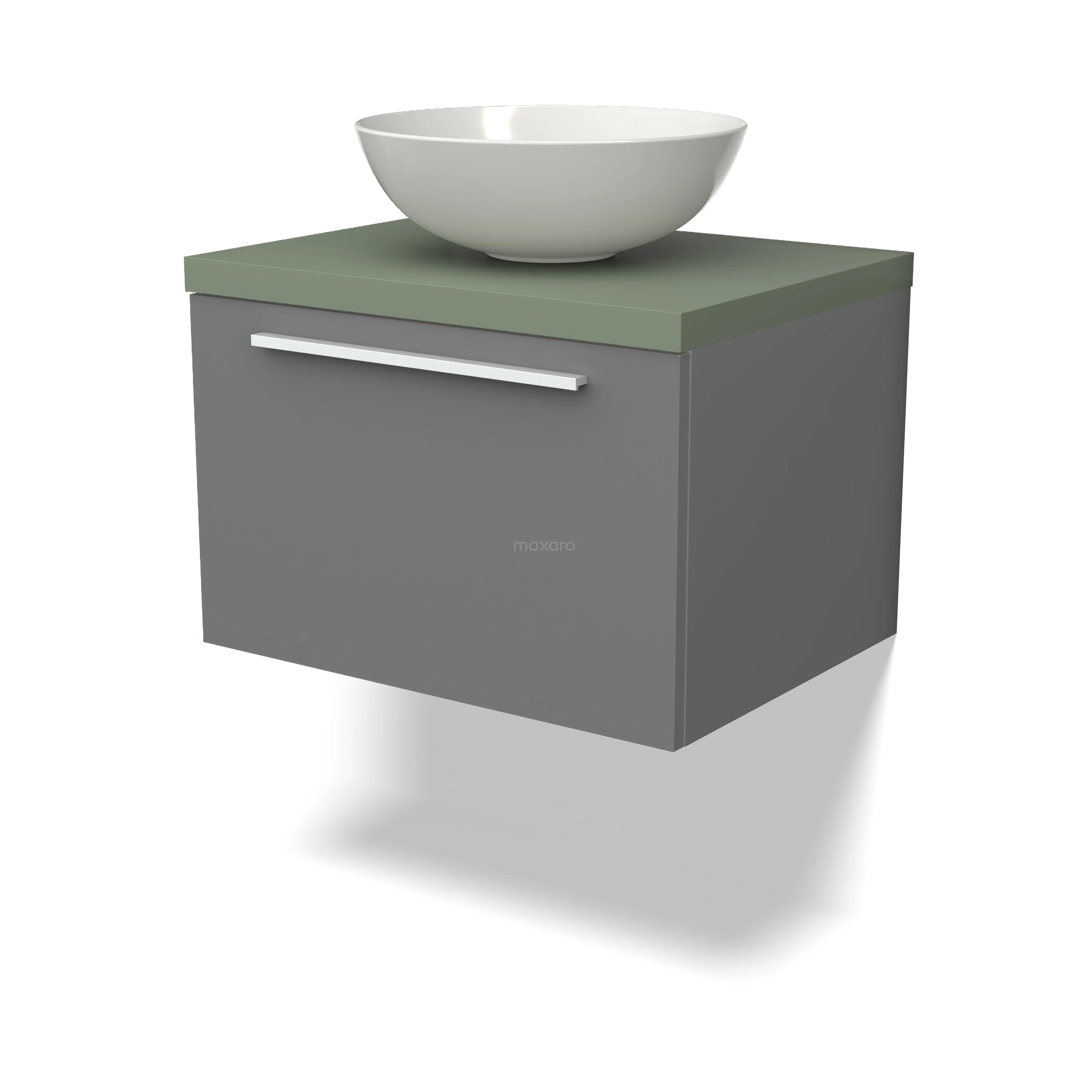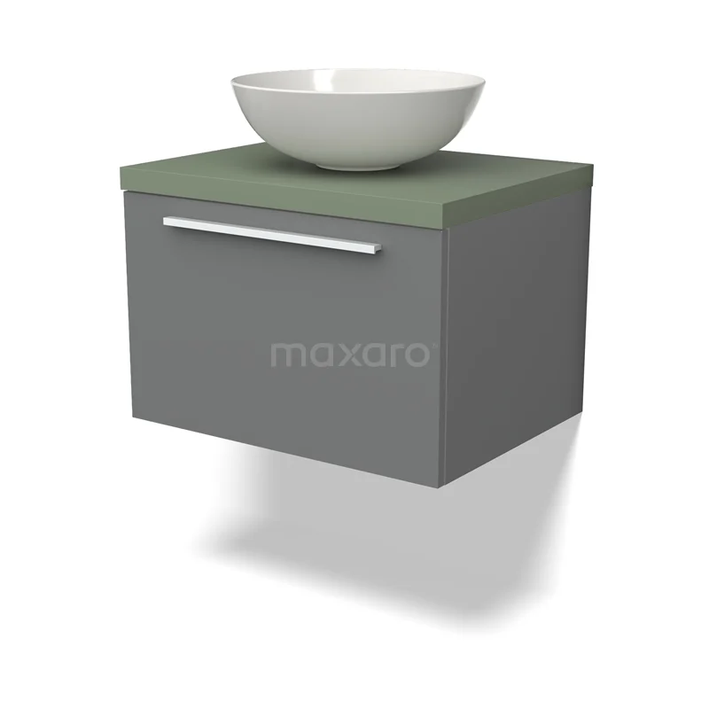 Modulo Plato Badmöbel mit Aufsatzwaschbecken | 60 cm Mittelgrau Flach front Salbeigrün blatt 1 Schublade
