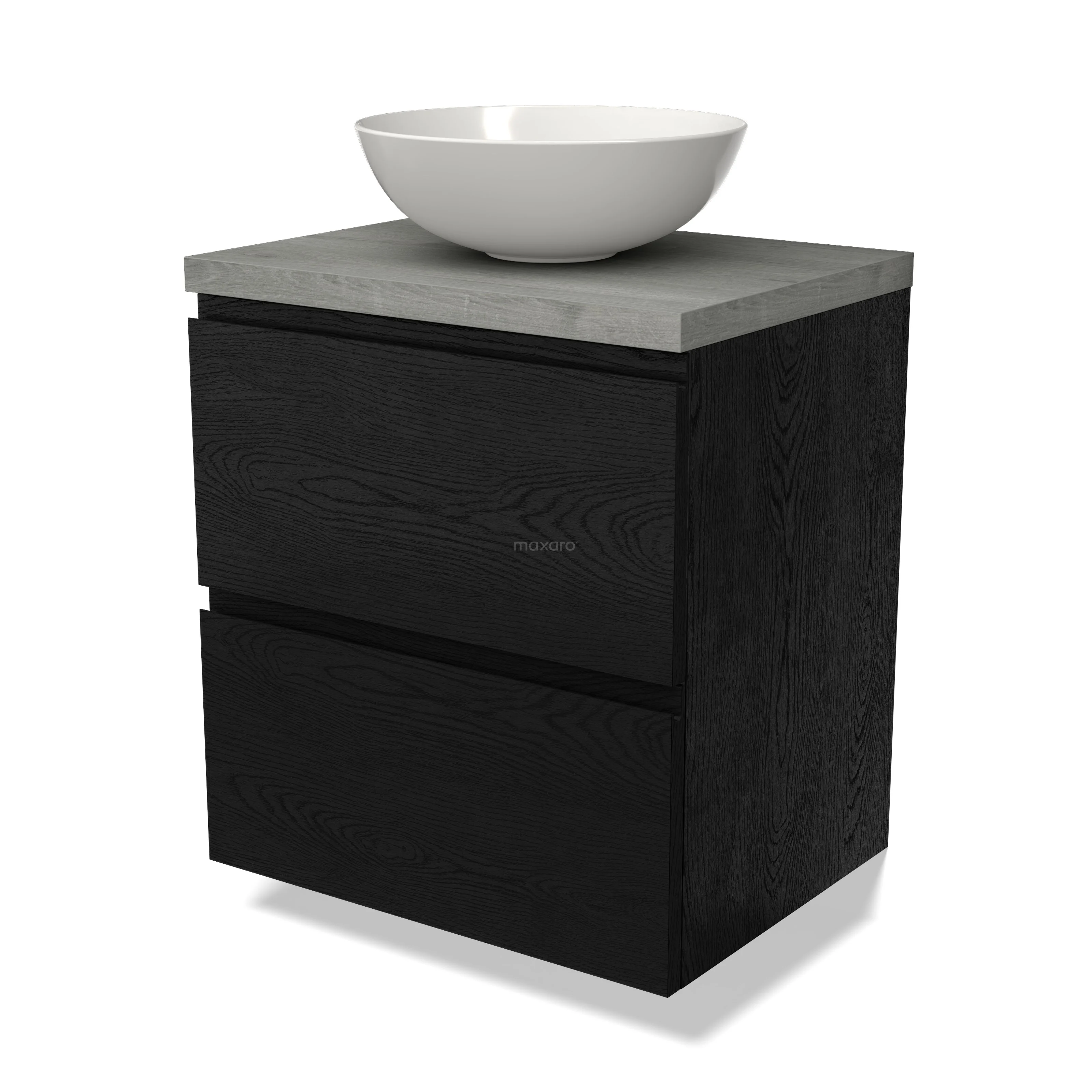 Modulo Plato Badmöbel mit Aufsatzwaschbecken | 60 cm Schwarze Eiche Grifflos front Graue Eiche blatt 2 übereinanderliegende Schubladen