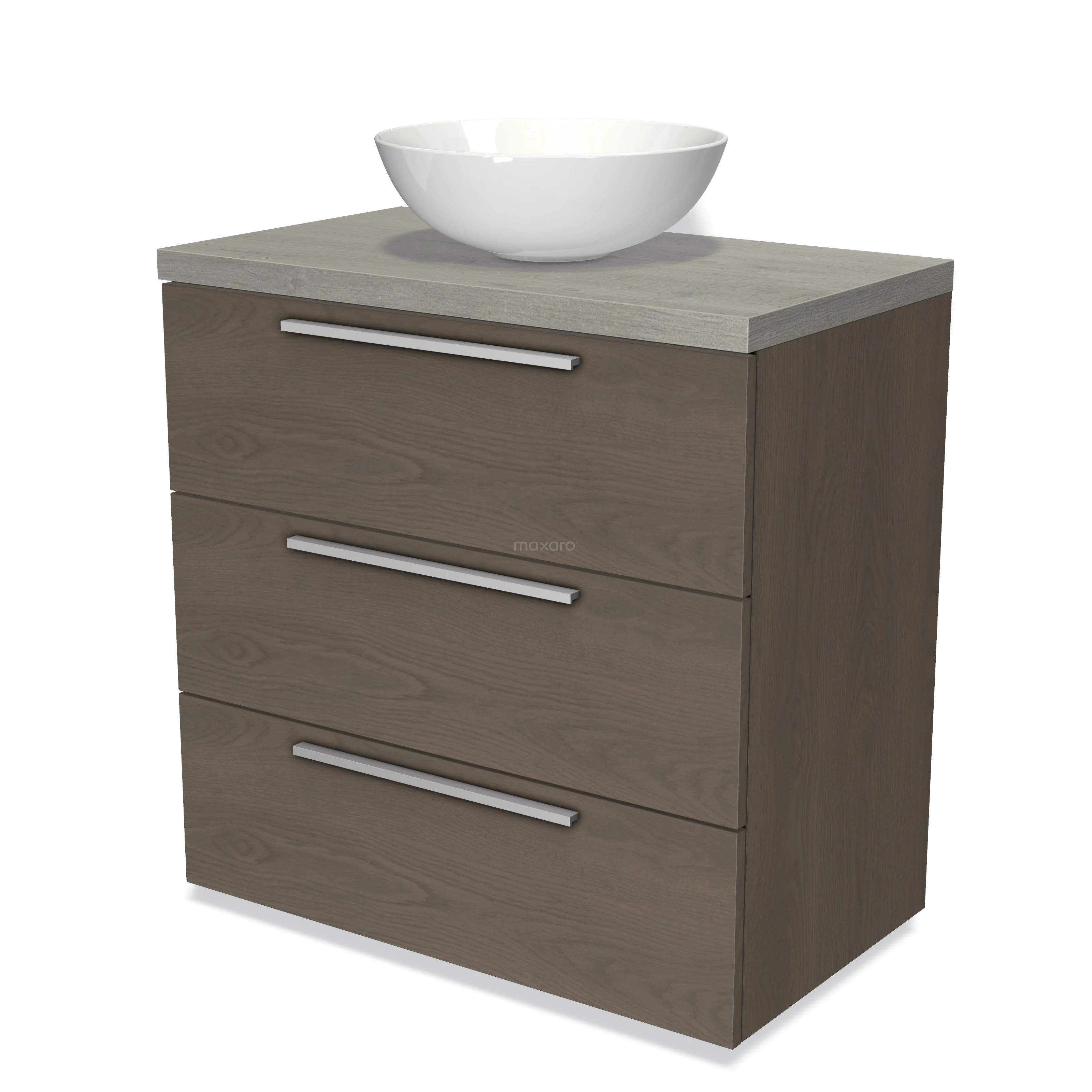 Modulo Plato Badmöbel mit Aufsatzwaschbecken | 80 cm Dunkelbraune Eiche Flach front Graue Eiche blatt 3 Schubladen