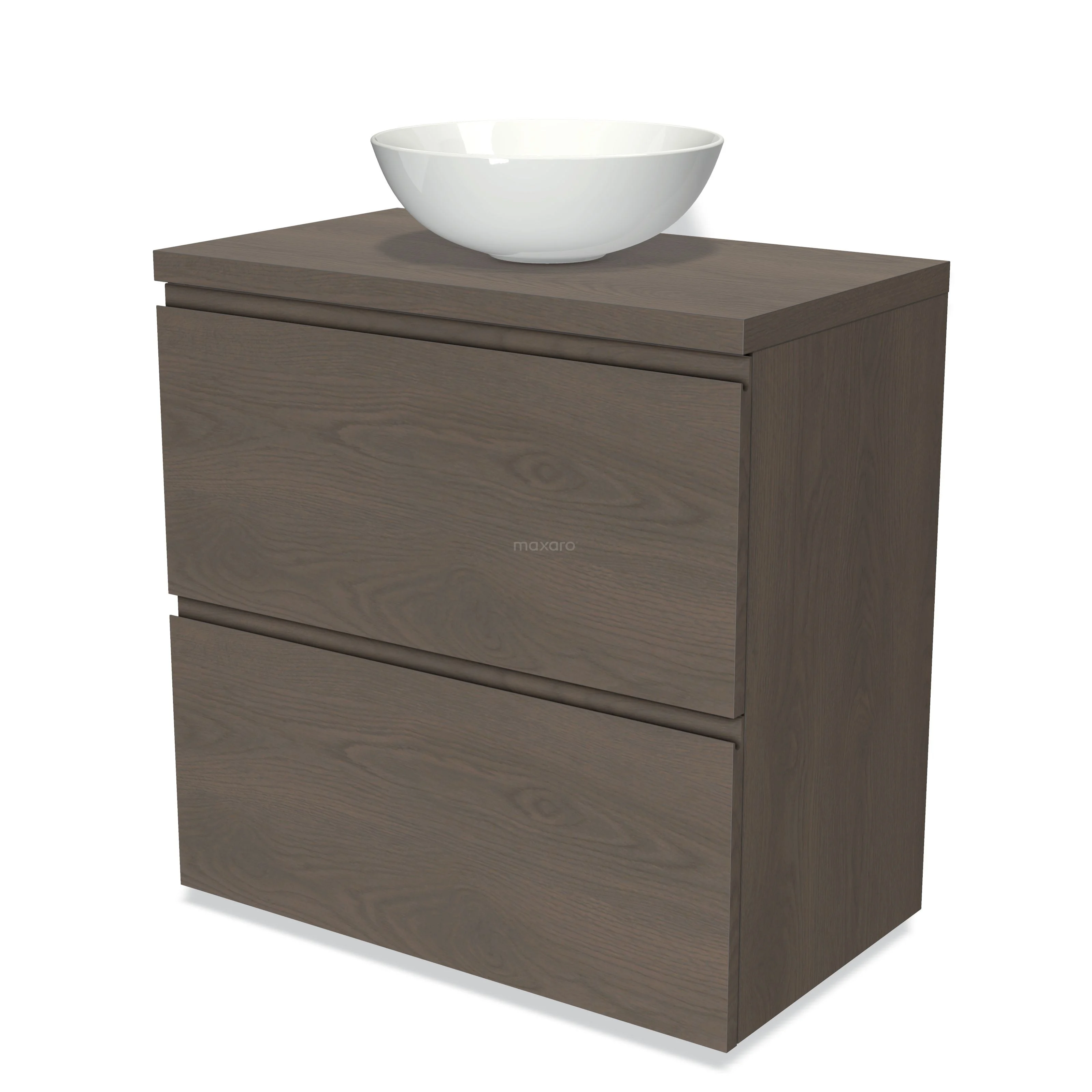 Modulo Plato Badmöbel mit Aufsatzwaschbecken | 80 cm Dunkelbraune Eiche Grifflos front Dunkelbraune Eiche blatt 2 hohe Schubladen übereinanderliegend