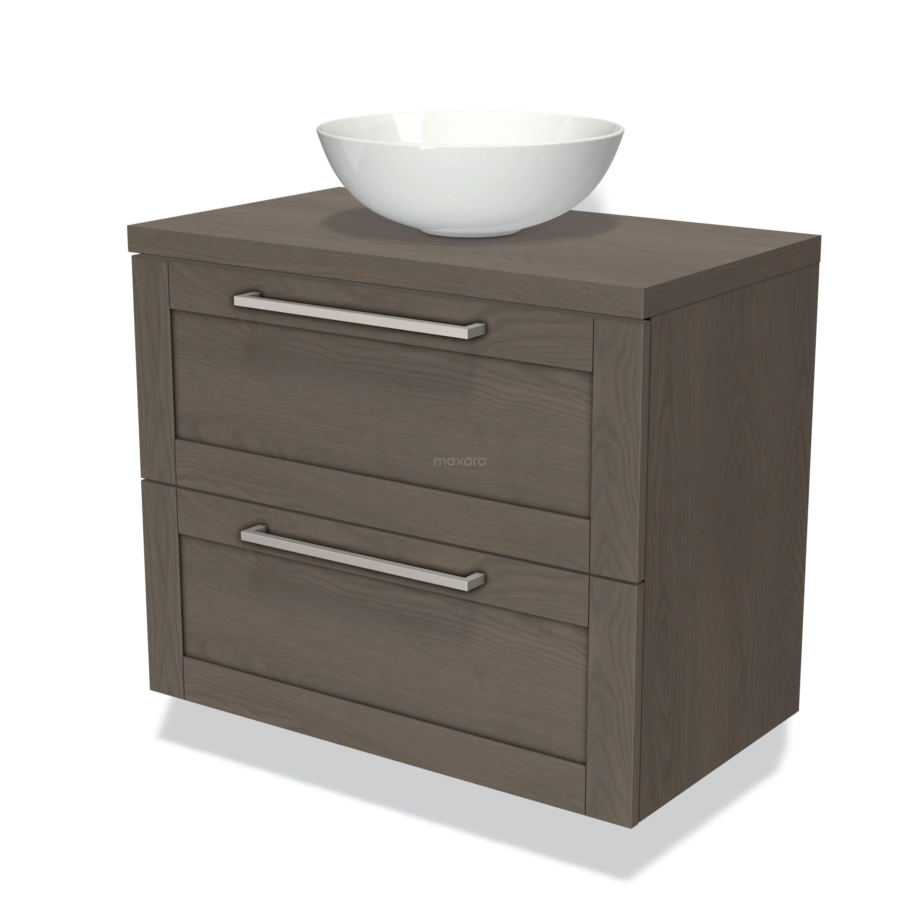 Modulo Plato Badmöbel mit Aufsatzwaschbecken | 80 cm Dunkelbraune Eiche Rahmen front Dunkelbraune Eiche blatt 2 übereinanderliegende Schubladen