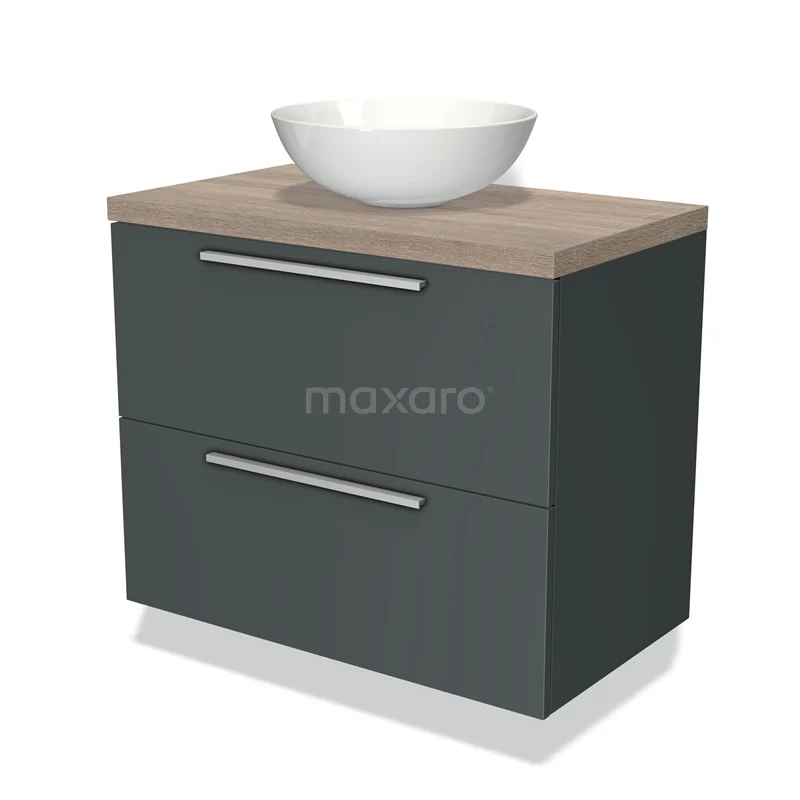 Modulo Plato Badmöbel mit Aufsatzwaschbecken | 80 cm Dunkelgrau Flach front Eiche blatt 2 übereinanderliegende Schubladen