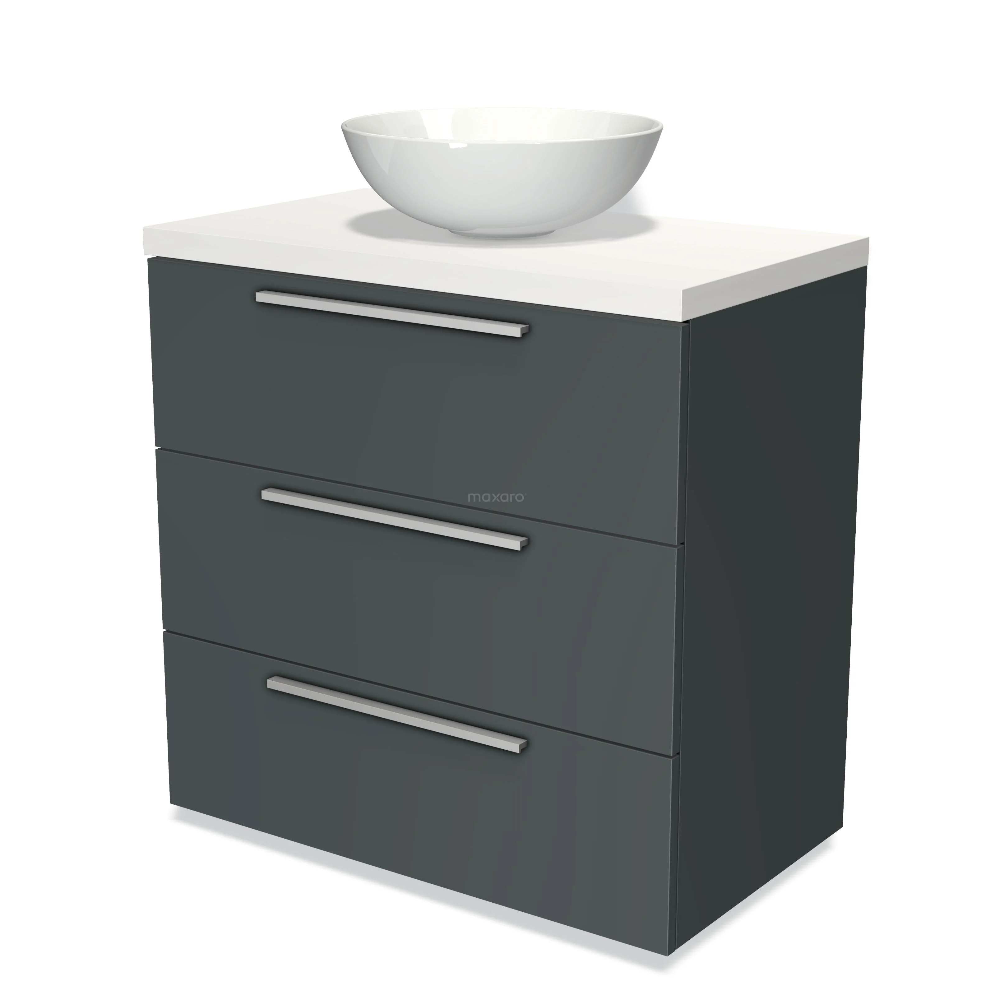 Modulo Plato Badmöbel mit Aufsatzwaschbecken | 80 cm Dunkelgrau Flach front Matt Weiß blatt 3 Schubladen