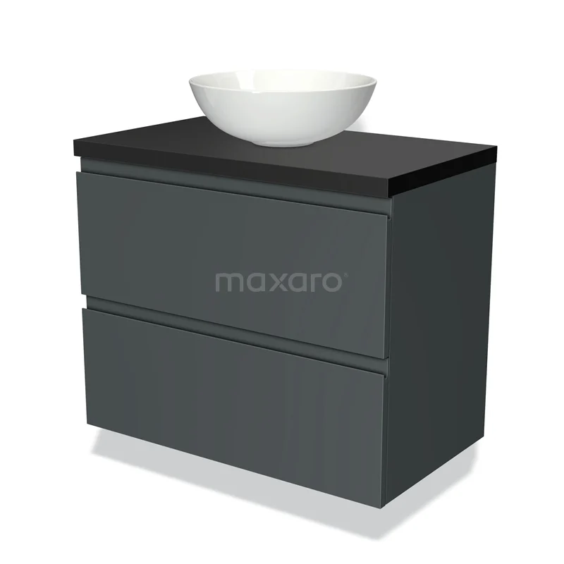 Modulo Plato Badmöbel mit Aufsatzwaschbecken | 80 cm Dunkelgrau Grifflos front Matt Schwarz blatt 2 übereinanderliegende Schubladen