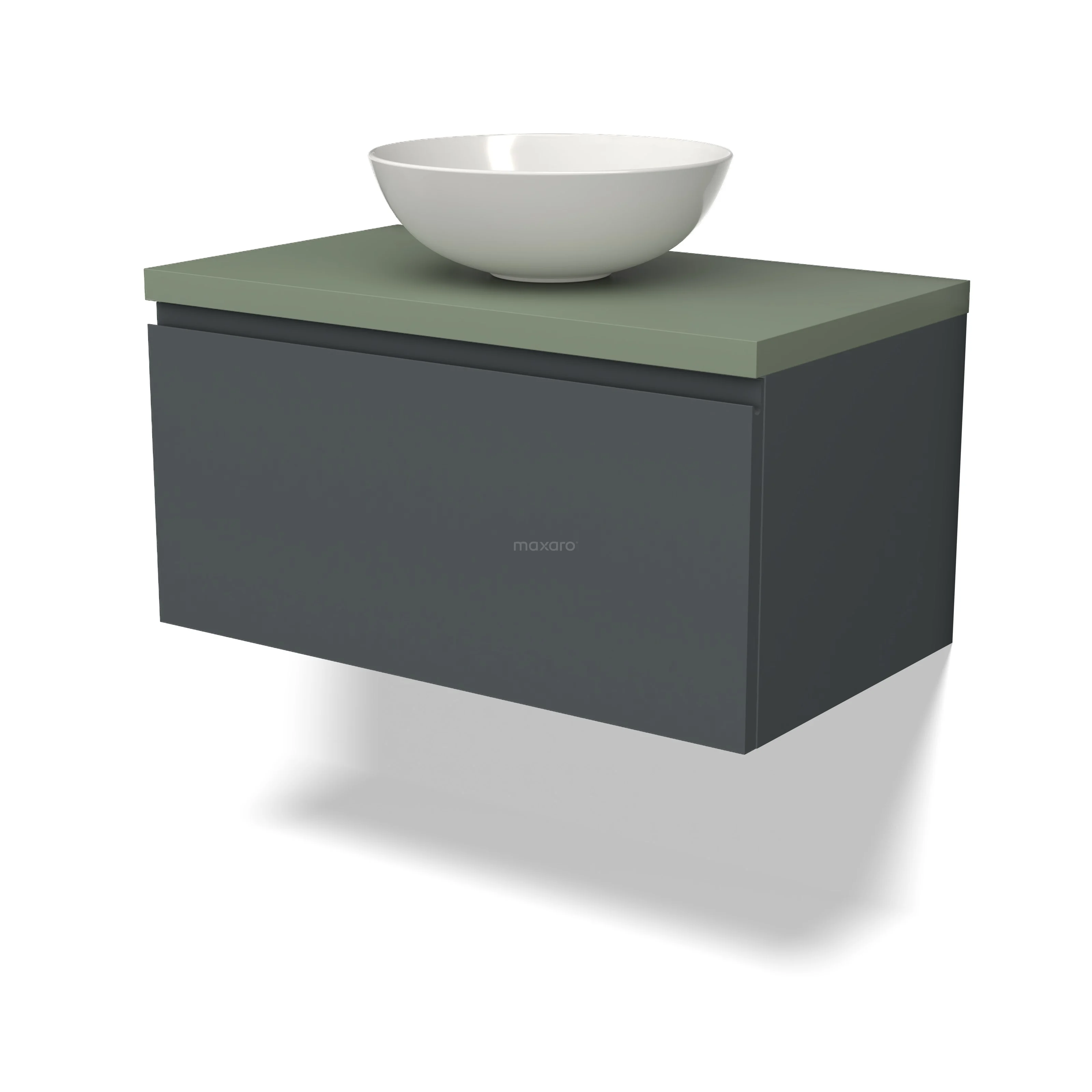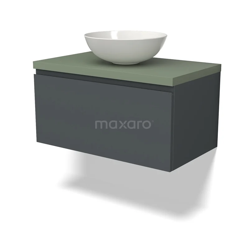Modulo Plato Badmöbel mit Aufsatzwaschbecken | 80 cm Dunkelgrau Grifflos front Salbeigrün blatt 1 Schublade