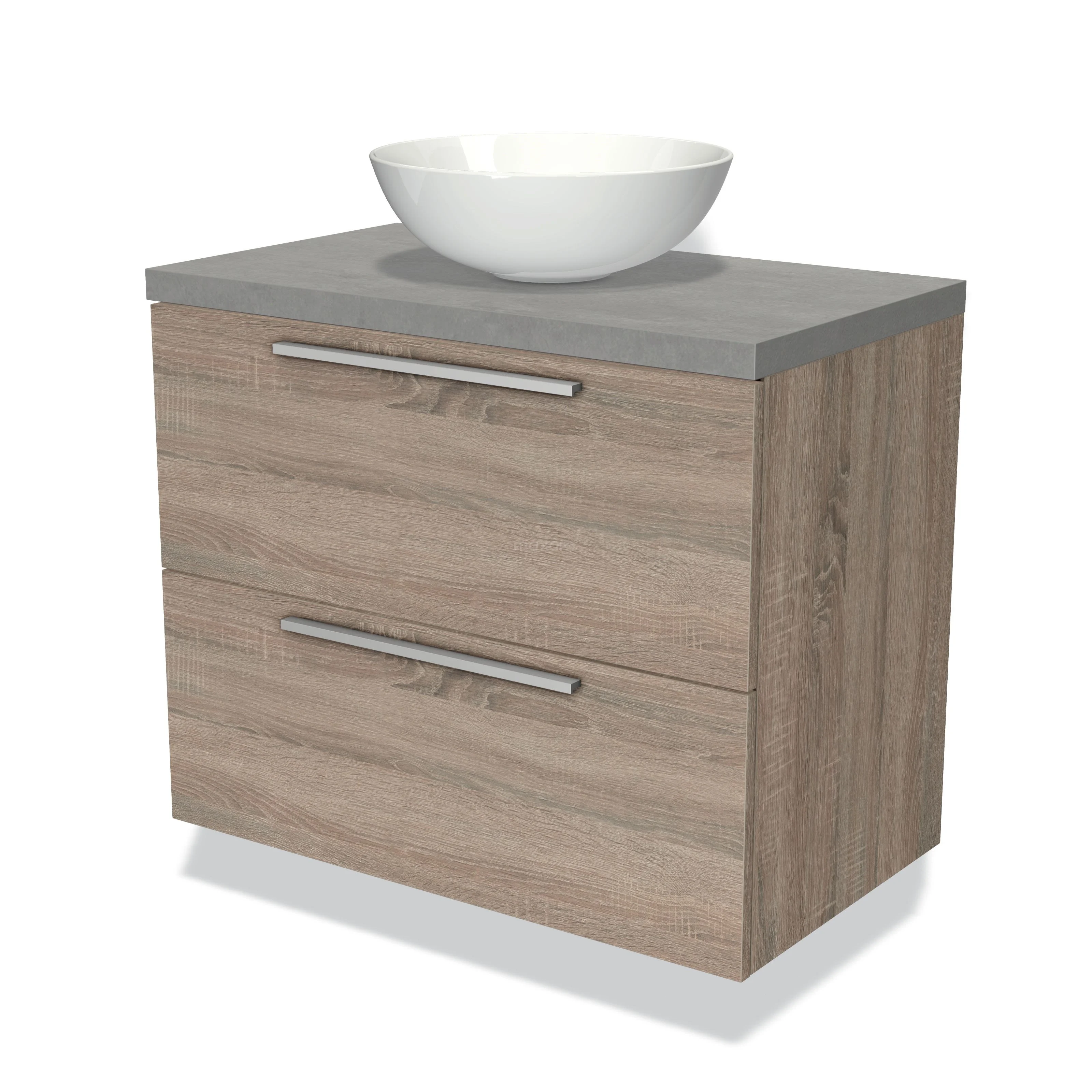 Modulo Plato Badmöbel mit Aufsatzwaschbecken | 80 cm Eiche Flach front Hellgrauer Beton blatt 2 übereinanderliegende Schubladen