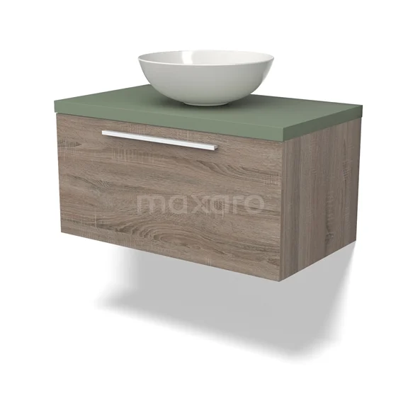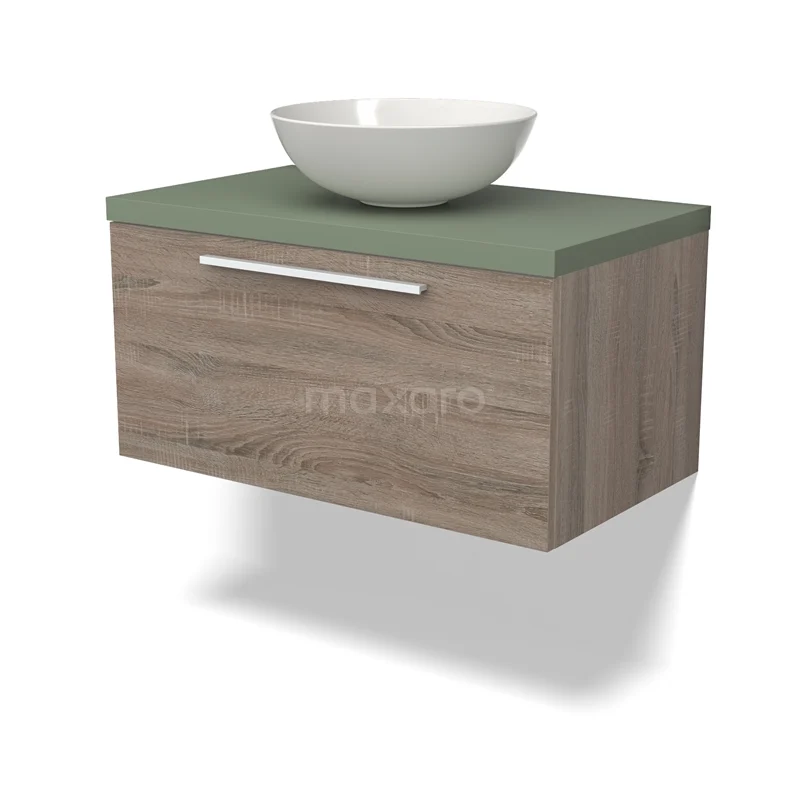 Modulo Plato Badmöbel mit Aufsatzwaschbecken | 80 cm Eiche Flach front Salbeigrün blatt 1 Schublade