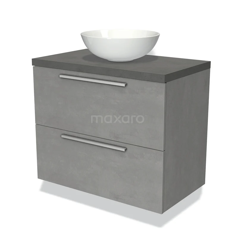 Modulo Plato Badmöbel mit Aufsatzwaschbecken | 80 cm Hellgrauer Beton Flach front Dunkelgrauer Beton blatt 2 übereinanderliegende Schubladen