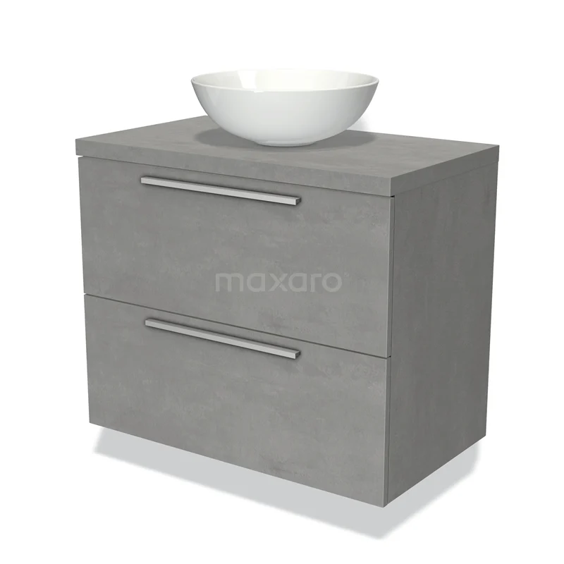 Modulo Plato Badmöbel mit Aufsatzwaschbecken | 80 cm Hellgrauer Beton Flach front Hellgrauer Beton blatt 2 übereinanderliegende Schubladen