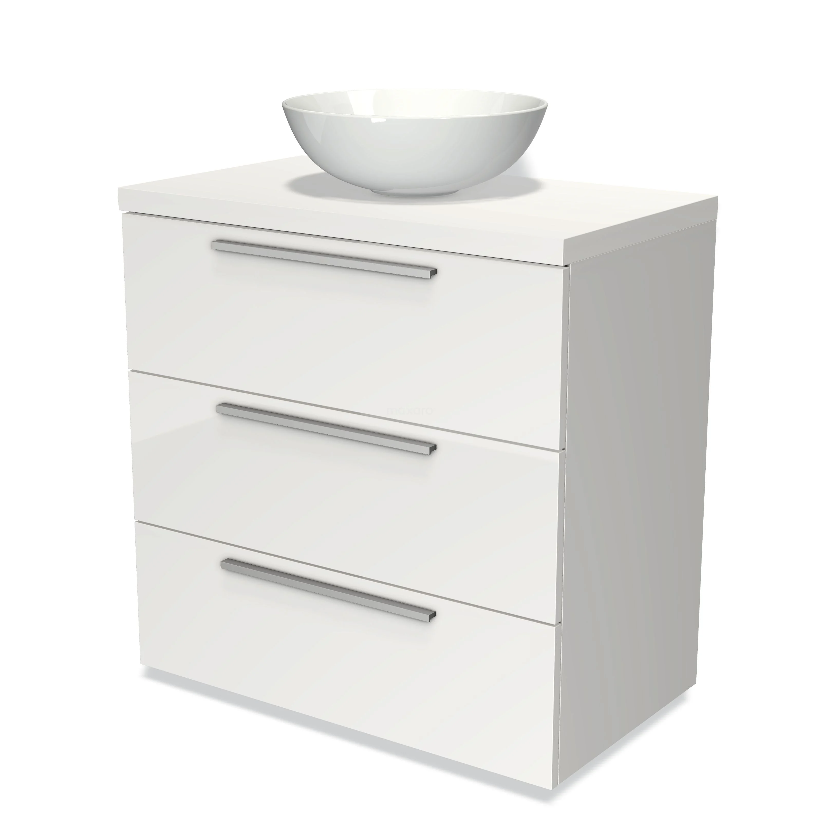 Modulo Plato Badmöbel mit Aufsatzwaschbecken | 80 cm Hochglanz Weiß Flach front Matt Weiß blatt 3 Schubladen