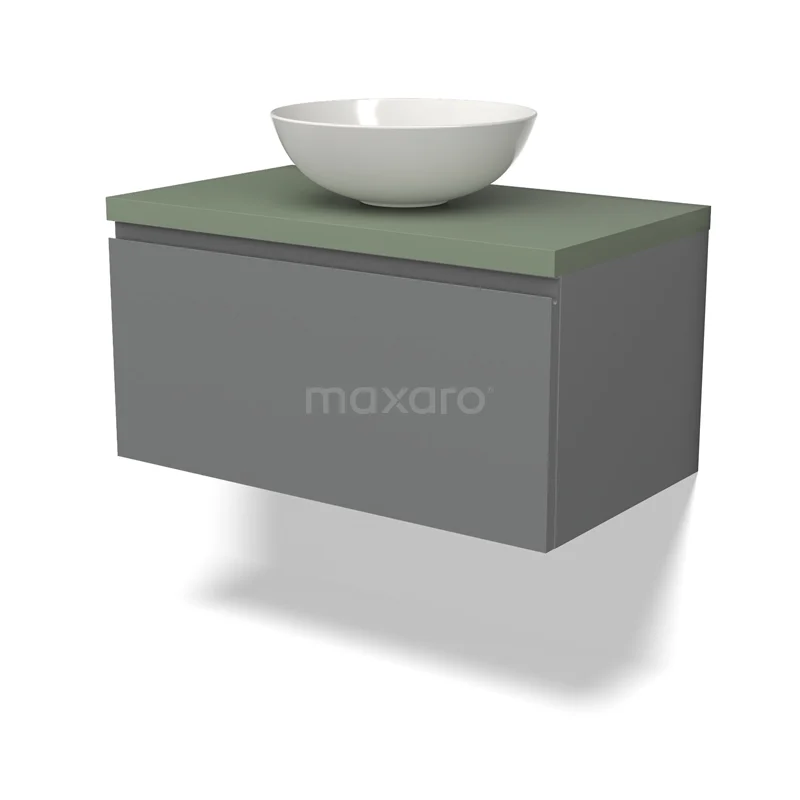Modulo Plato Badmöbel mit Aufsatzwaschbecken | 80 cm Mittelgrau Grifflos front Salbeigrün blatt 1 Schublade