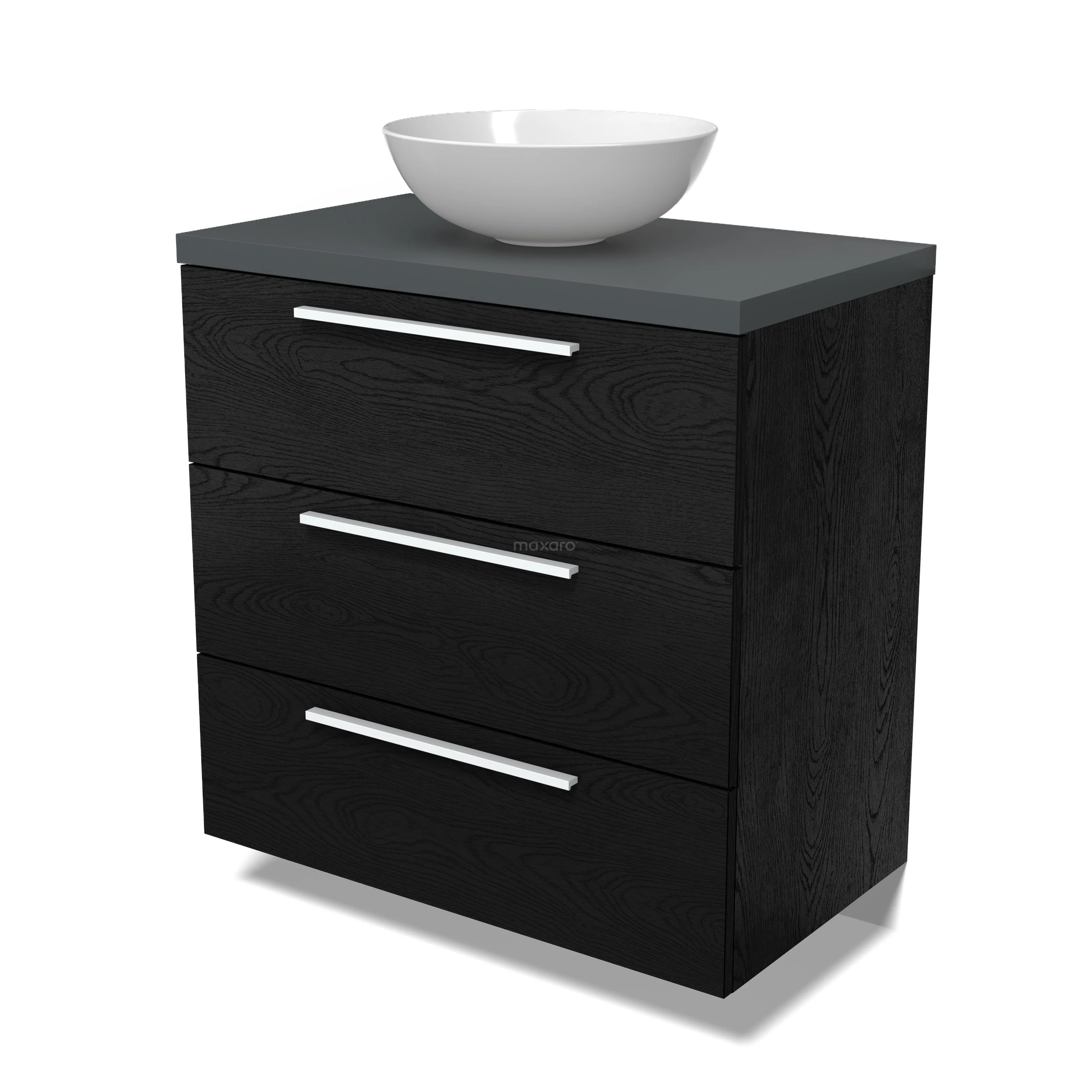 Modulo Plato Badmöbel mit Aufsatzwaschbecken | 80 cm Schwarze Eiche Flach front Dunkelgrau blatt 3 Schubladen