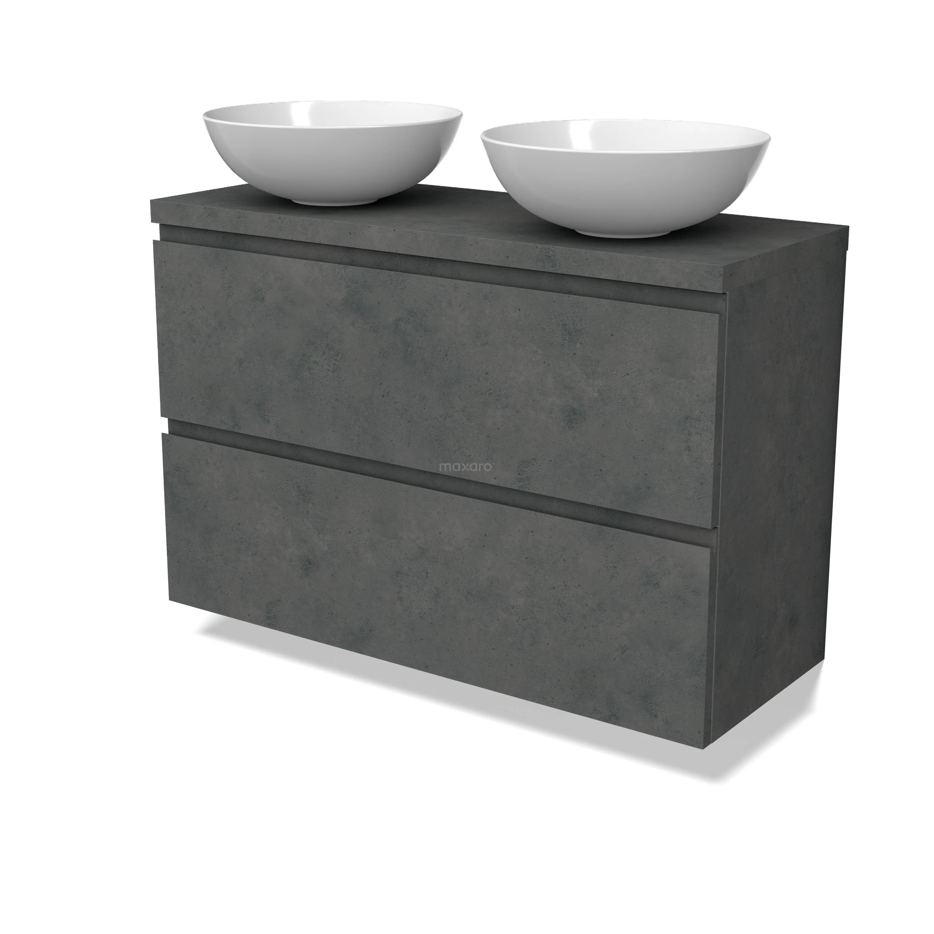 Modulo Plato Slim Badmöbel mit Aufsatzwaschbecken | 100 cm Dunkelgrauer Beton Grifflos front Dunkelgrauer Beton blatt 2 übereinanderliegende Schubladen