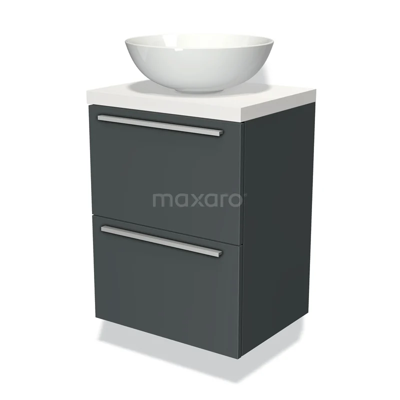 Modulo Plato Slim Badmöbel mit Aufsatzwaschbecken | 50 cm Dunkelgrau Flach front Matt Weiß blatt 2 übereinanderliegende Schubladen