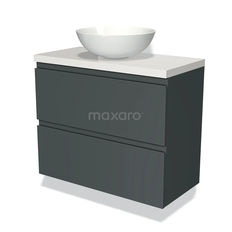 Modulo Plato Slim Badmöbel mit Aufsatzwaschbecken | 80 cm Dunkelgrau Grifflos front Hochglanz Weiß blatt 2 übereinanderliegende Schubladen