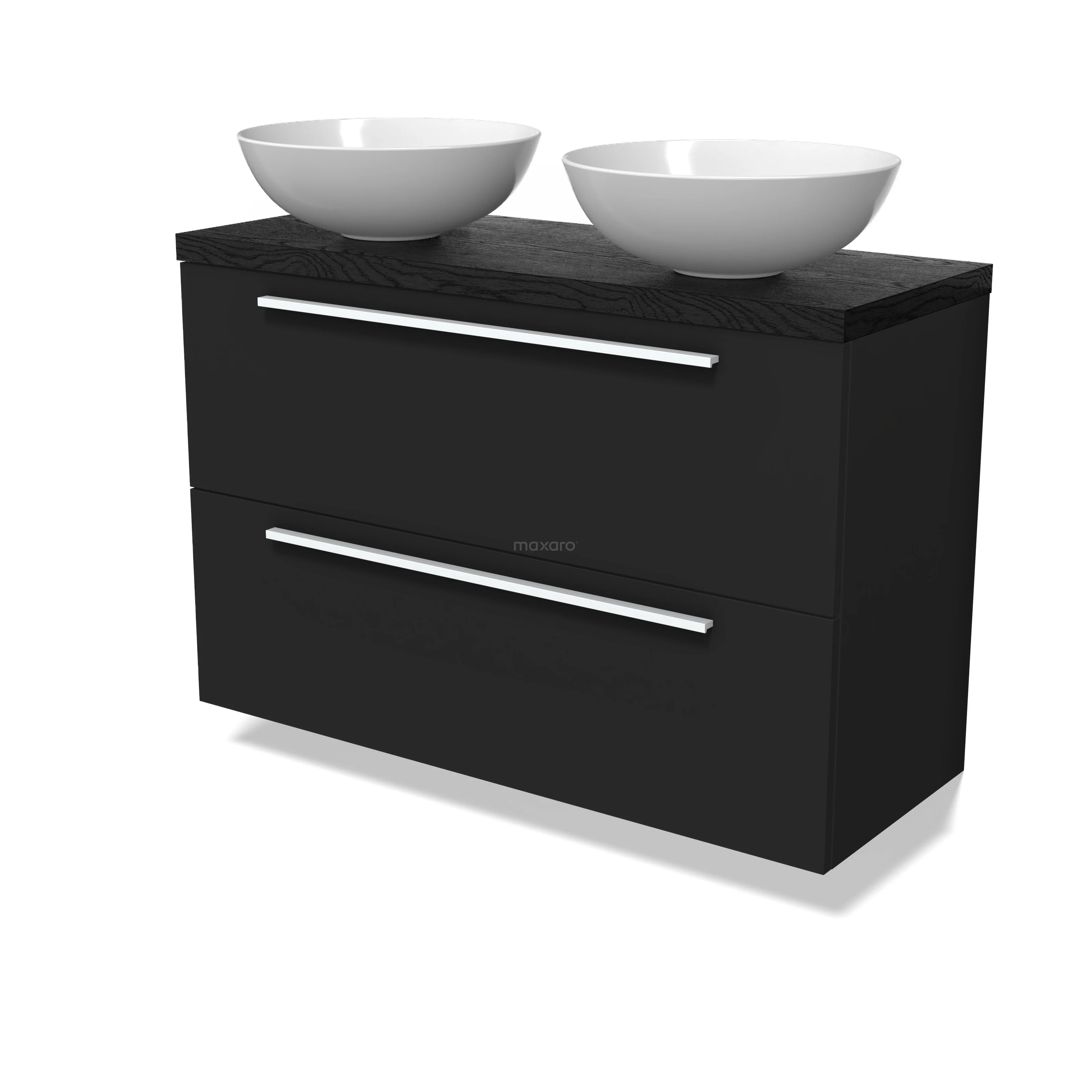 Modulo Plato Slim Badmöbel mit Aufsatzwaschbecken | 100 cm Matt Schwarz Flach front Schwarze Eiche blatt 2 übereinanderliegende Schubladen