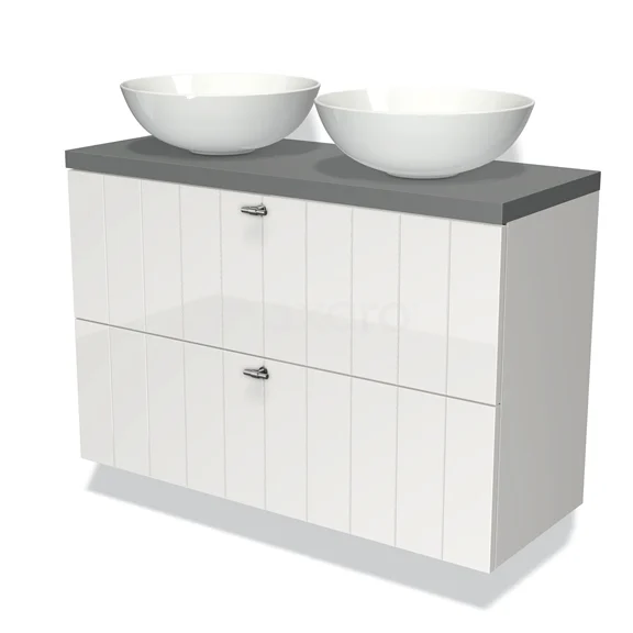 Waschtischunterschrank mit Konsole 100cm Modulo Plato Slim Hochglanz Weiß 2 Schubladen Laminat