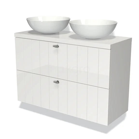 Waschtischunterschrank mit Konsole 100cm Modulo Plato Slim Hochglanz Weiß 2 Schubladen Laminat