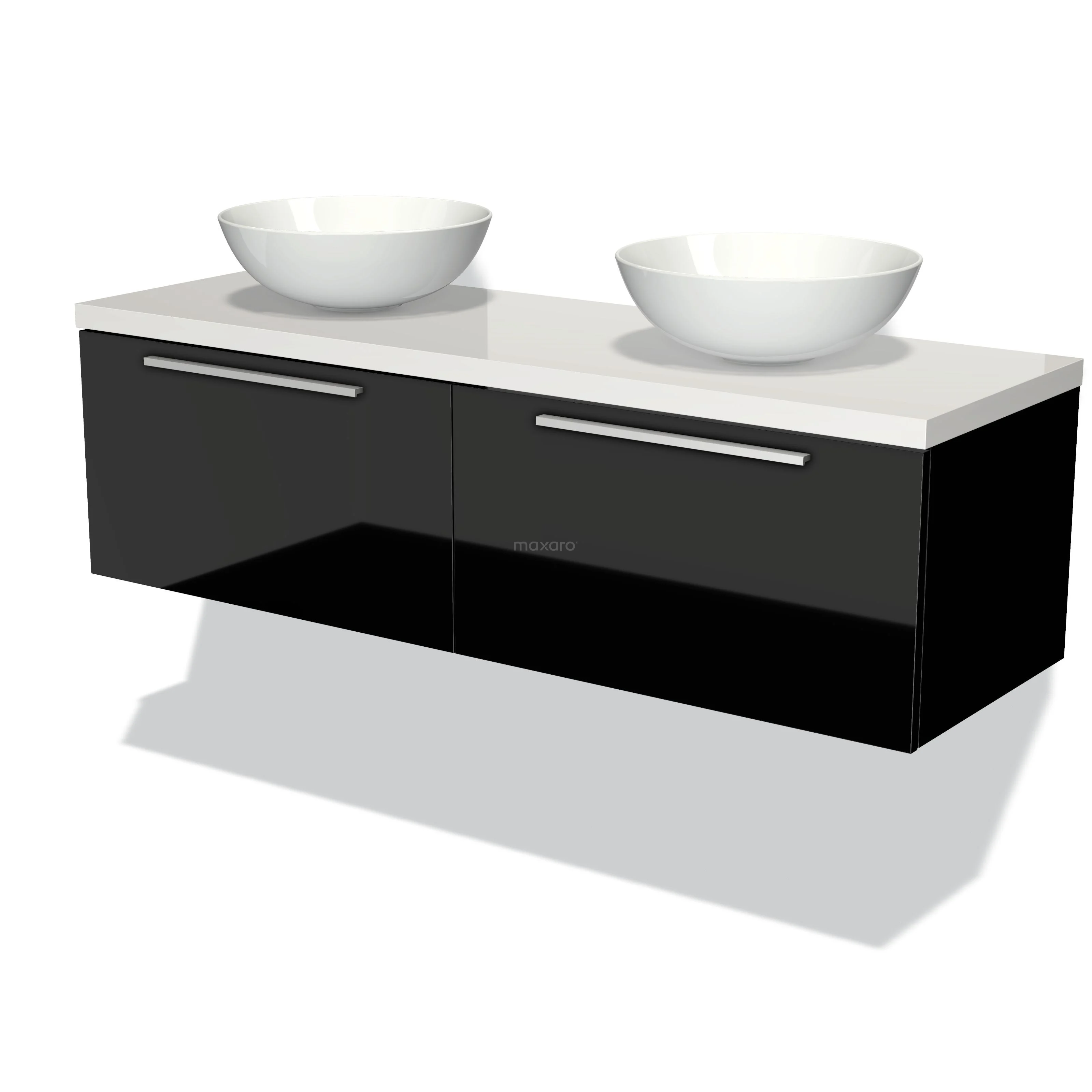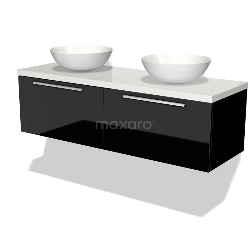 Waschtischunterschrank mit Konsole 140cm Modulo Plato Hochglanz Schwarz 2 Schubladen Flach Hochglanz Weiß Platte